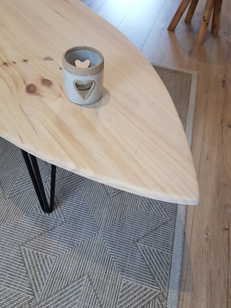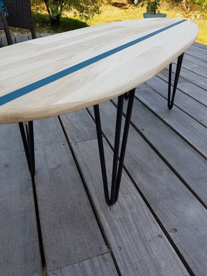 Un doux parfum d'été, des couleurs douces, un design unique, vous n'êtes pas au bord de la mer mais bien dans votre salon, avec la table basse planche de surf bolge 60 par salty design.